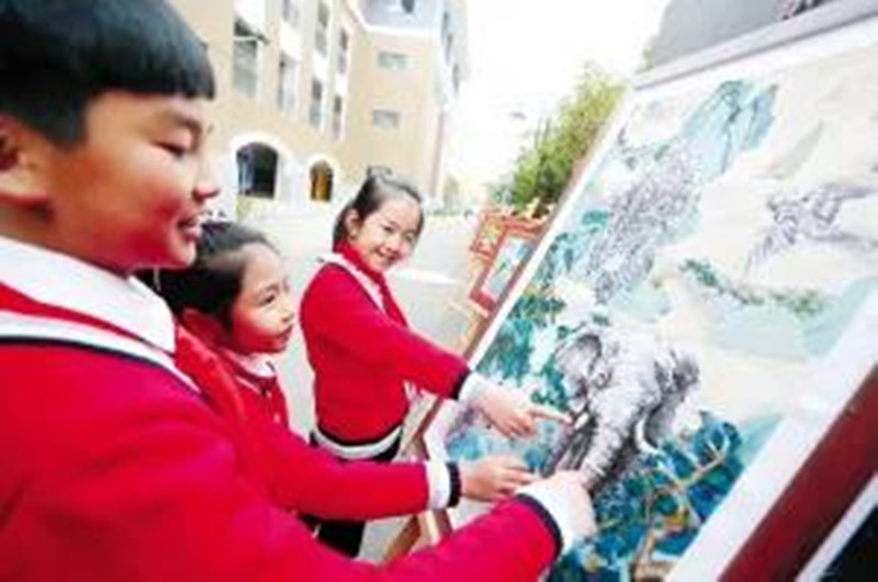 昆明小學生通過繪畫作品學習生物多樣性。